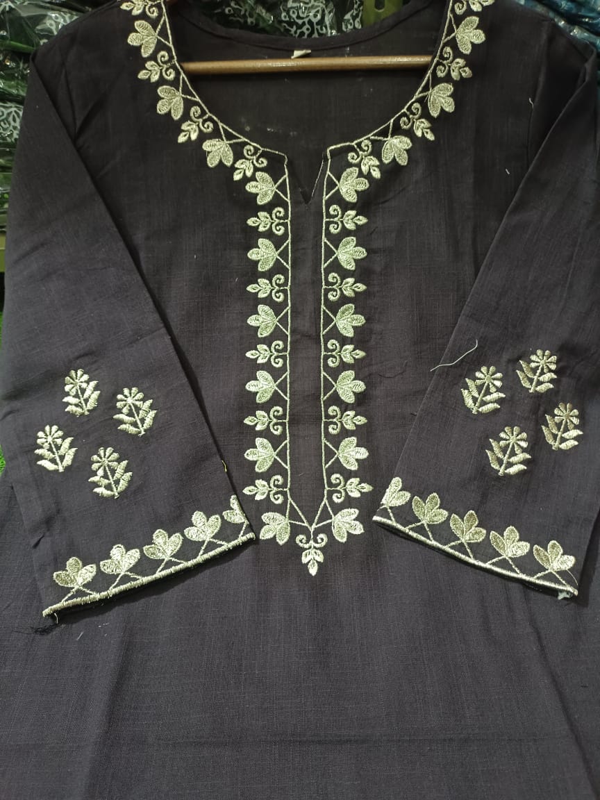 *COTTON SLUB KURTI WITH AARI EMBROIDERY WORK*