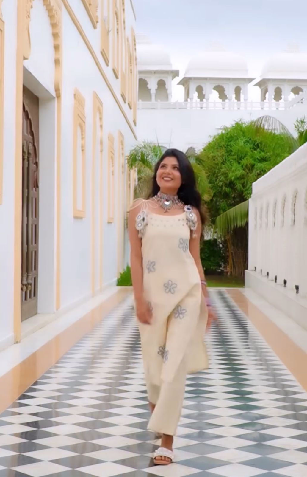 *In this design you will see sleeveless kurta and elegant mirror work, work on kurta hand dori work*
