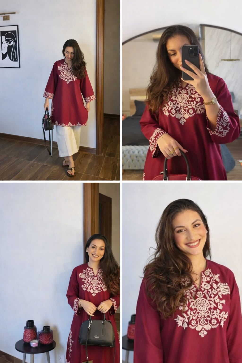 Step into effortless grace with our classic black cotton co-ord set. The lightweight kurta features intricate thread embroidery along the neckline, sleeves, and hem—adding a refined touch to your look. Paired with soft, relaxed-fit palazzos, this breathable set is perfect for casual outings, festive events, or elegant daywear.