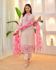 White pink Embroidery Work suit